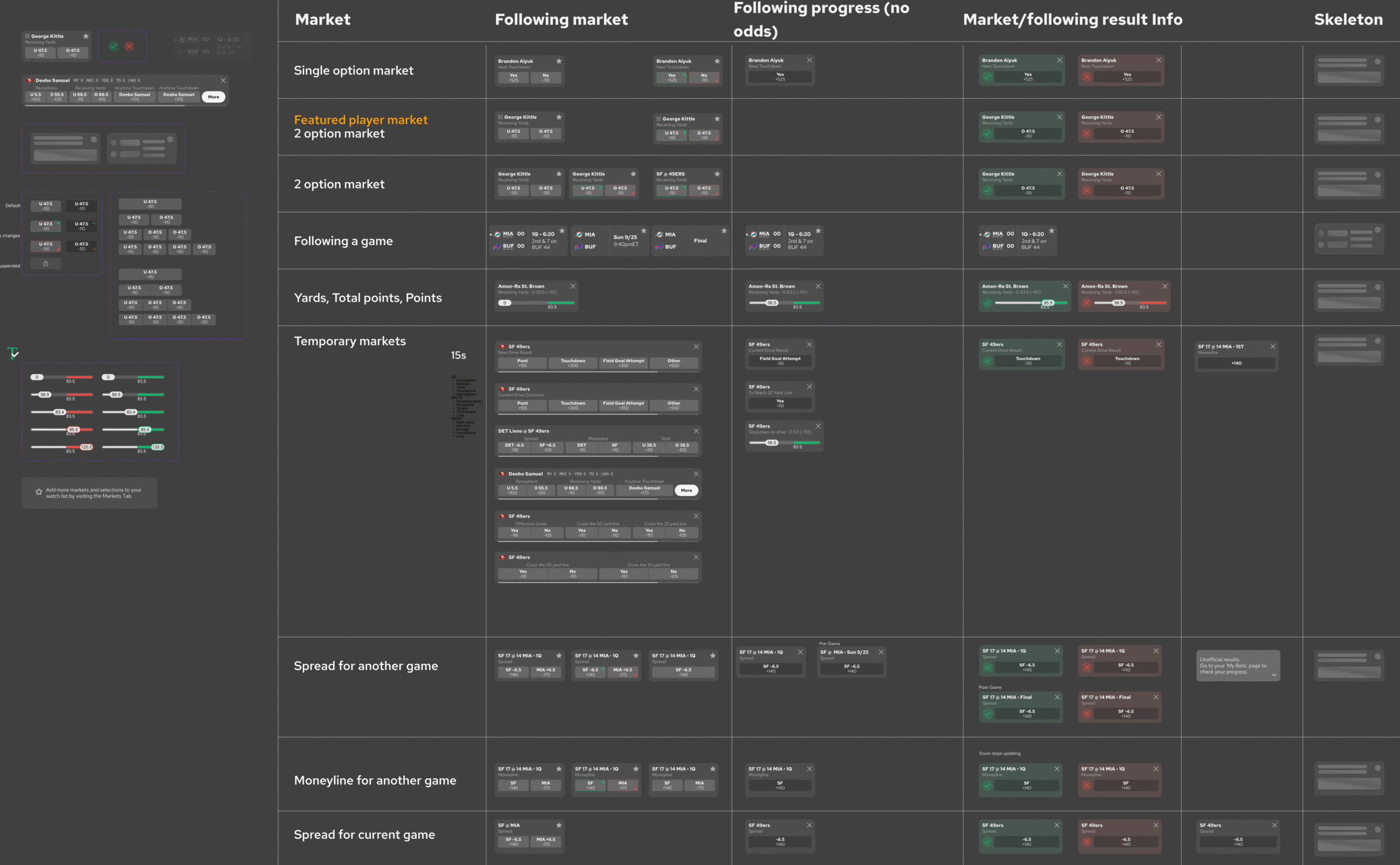 Sistematización: Para asegurar la escalabilidad a través de diferentes deportes (NFL, Premier League, etc.), documenté una librería de componentes integral. Esto incluyó colores accesibles y seguros para video, tipografía con contraste verificado para uso en superposiciones y tarjetas de apuestas modulares que podían adaptarse a diferentes tamaños de pantalla.